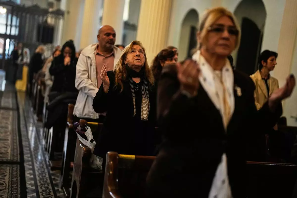 Christian worshippers take part in Sunday Mass at the Armenian Patriarchate in Antelias, north of Beirut, Lebanon, Sunday, Nov. 23, 2025. (AP Photo/Bilal Hussein)