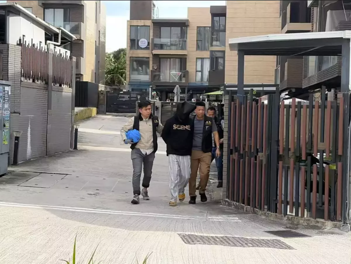 The police earlier escorted the suspect back to his residence in Yuen Long for evidence collection. Photo by Bastille Post