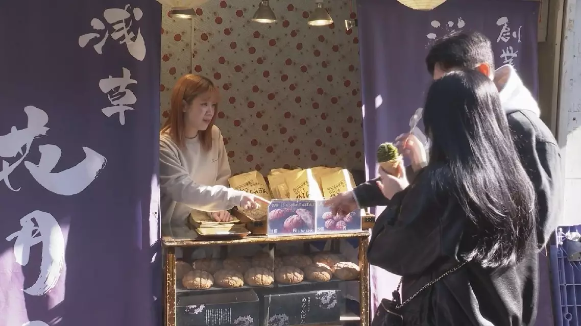 "We receive more foreign visitors. If you divide customers into Japanese and foreigners, around 60 to 70 percent of them are from other countries. We also run another shop near Kaminarimon. When we ask customers where they're from, we can feel the decrease of Chinese visitors," said a bakery owner.