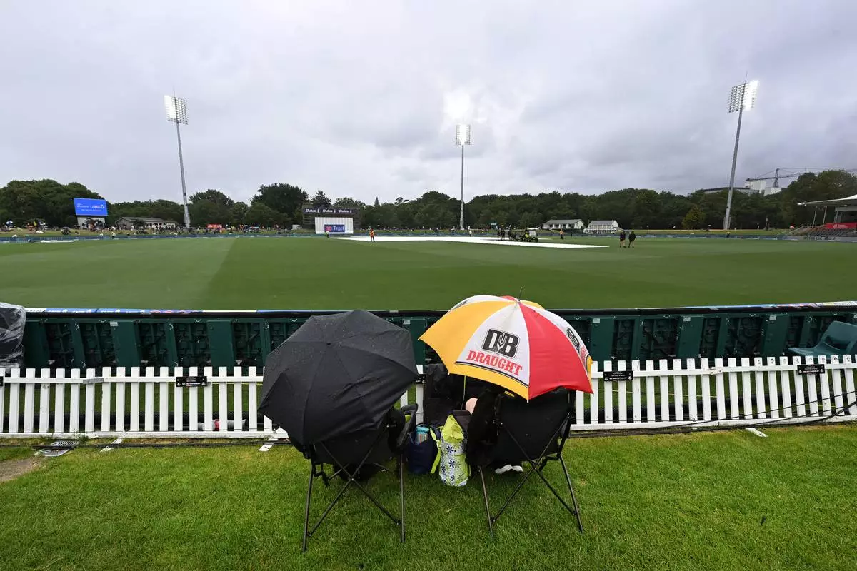 Only 10.3 overs were bowled in a rain-affected first session at the end of which New Zealand was 17-1. New Zealand added 121 runs in an extended second session in which 32.3 overs were bowled and at the cost of Williamson, Latham, Ravindra and Will Young.