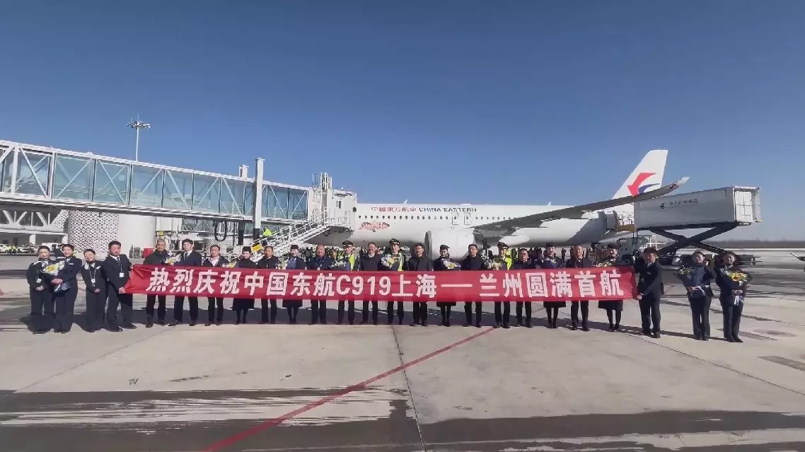 China's domestically developed large passenger aircraft, the C919, launched a commercial service on the Shanghai-Lanzhou route on Monday, marking its first flight to a plateau airport.
