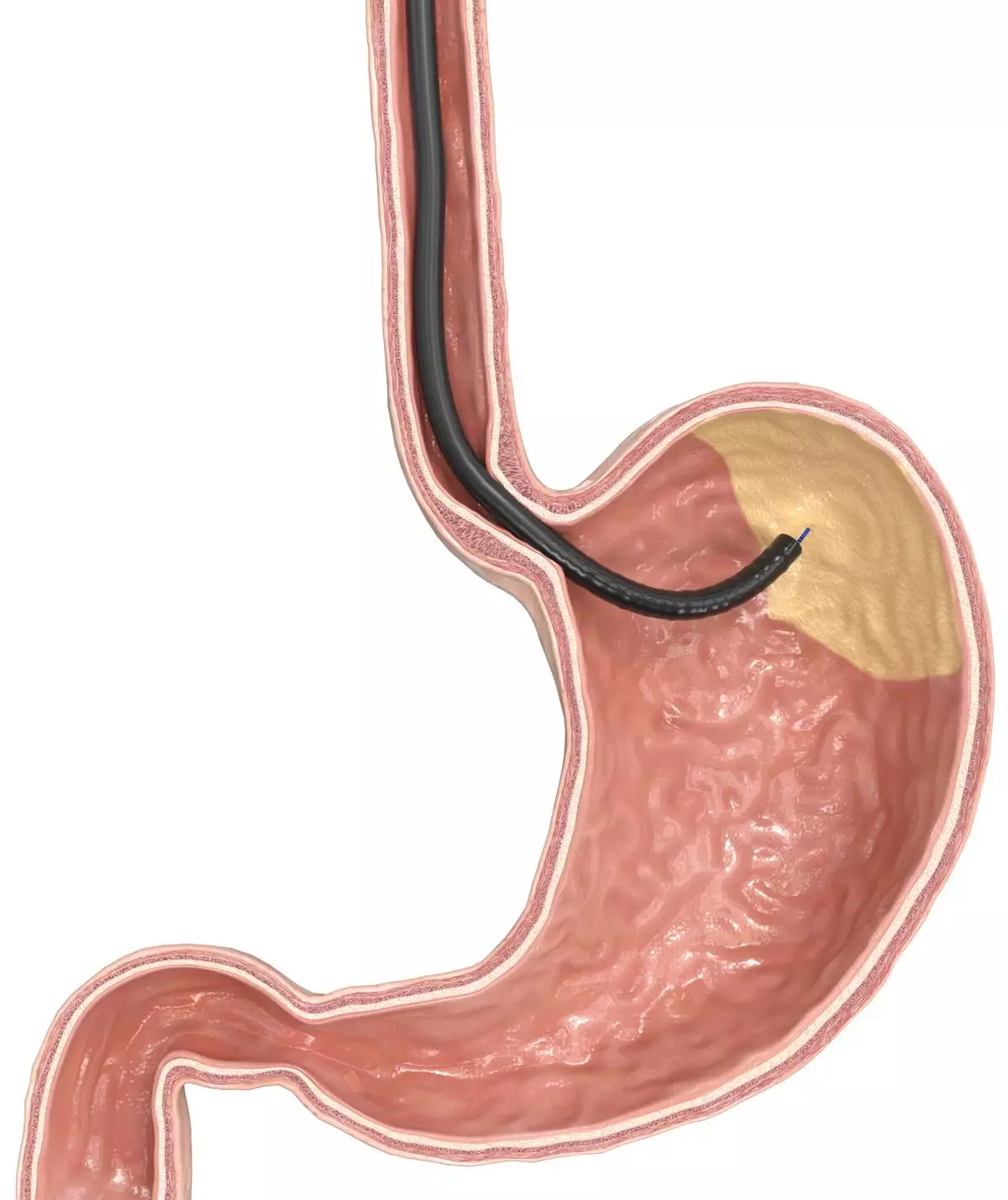 GMA is an incisionless, minimally invasive endoscopic procedure. It targets the gastric fundus, the main site of ghrelin production – the so-called hunger hormone. By reducing ghrelin levels, patients experience less hunger. At the same time, the ablated tissue shrinks the fundus, which reduces stomach capacity. Together, these effects can support controlled weight reduction.