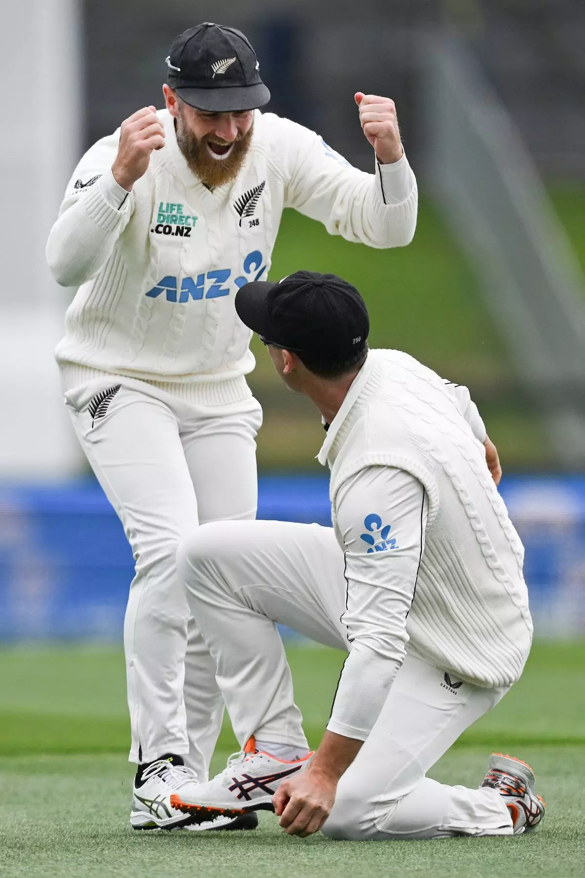New Zealand then had to bat again under darkening skies and reached 32 without loss with Tom Latham 14 not out and Devon Conway 15.