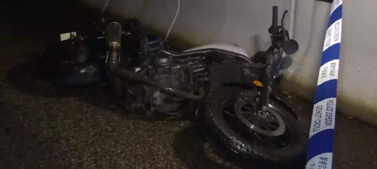At 1.30am, a motorcycle driven by a 25-year-old non-ethnic Chinese man was travelling along Lin Cheung Road towards West Kowloon Highway. When approaching near a left bend, the motorcycle suspectedly went out of control and rammed into a kerb.