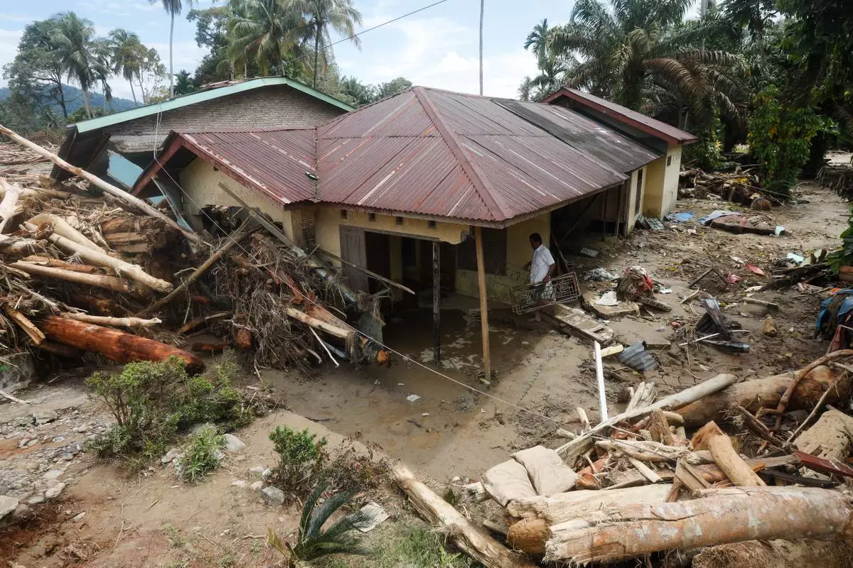 A man cleans his house at a village affected by flood in Batang Toru, North Sumatra, Indonesia, Wednesday, Dec. 3, 2025. (AP Photo/Binsar Bakkara)