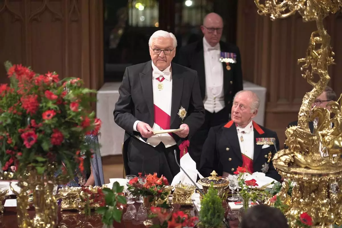 LONDON (AP) — Britain’s King Charles III and German President Frank-Walter Steinmeier put on a show of Anglo-Saxon unity Wednesday as their countries expand cooperation to fend off threats to European security, combat climate change and bolster economic growth.