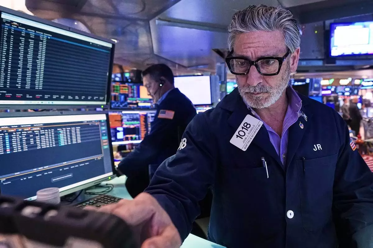 Trader John Romolo works on the floor of the New York Stock Exchange, Tuesday, Dec. 2, 2025. (AP Photo/Richard Drew)