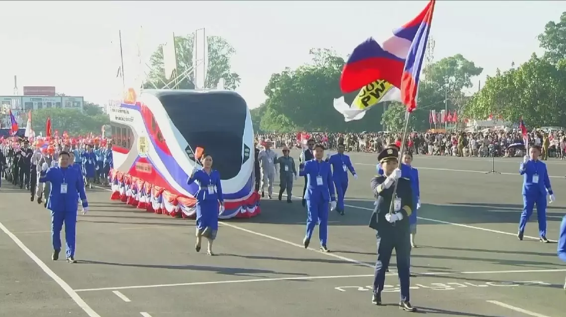 China-Laos Railway 'train float' debuts at Lao national day parade