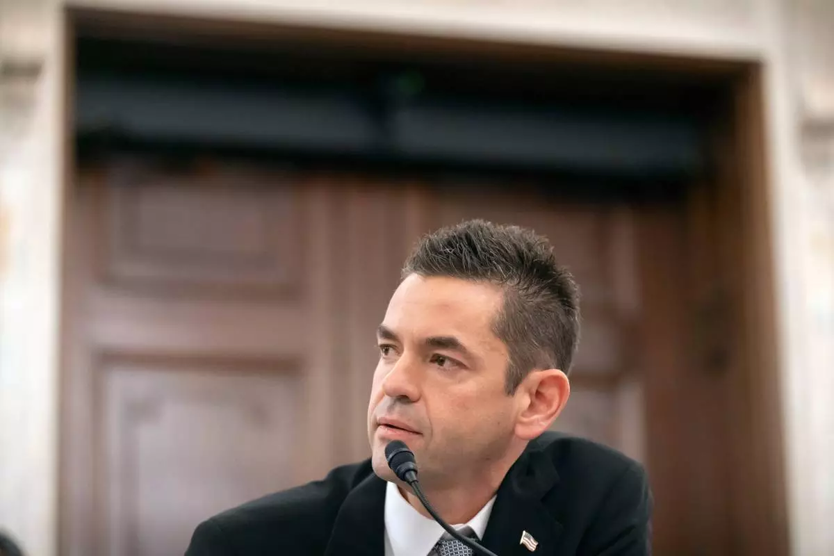 Jared Isaacman, President Donald Trump's pick to be NASA Administrator, stands before a hearing of the Senate Commerce, Science, and Transportation Committee on Capitol Hill, Wednesday, Dec. 3, 2025, in Washington. (AP Photo/Mark Schiefelbein)