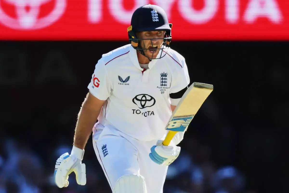 England's Joe Root reacts after miss a delivery during the second Ashes cricket test match between Australia and England in Brisbane, Thursday, Dec. 4, 2025.. (AP Photo/Tertius Pickard)