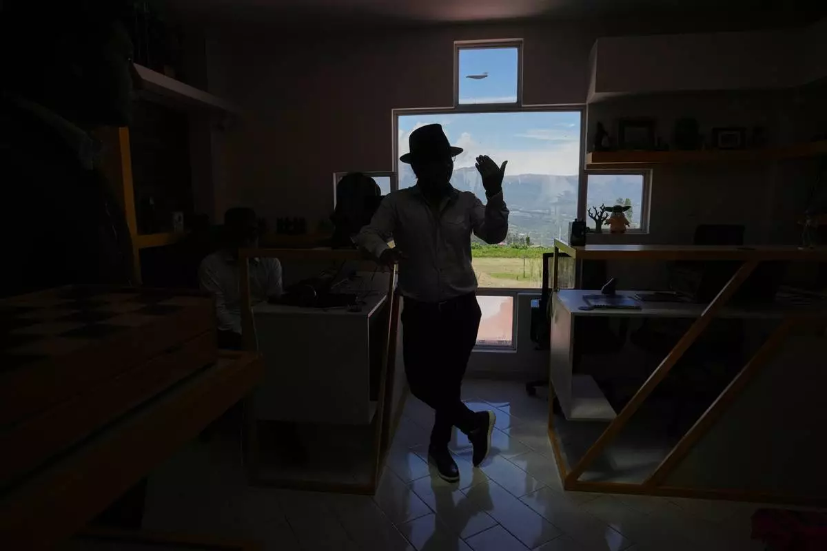Tupac Amaru, the director of "Aya Somos," the first Quichua animated short, blending Otavalo culture with Japanese-style anime, gives an interview in Hatun Rumi, Ecuador, Wednesday, Dec. 3, 2025. (AP Photo/Dolores Ochoa)