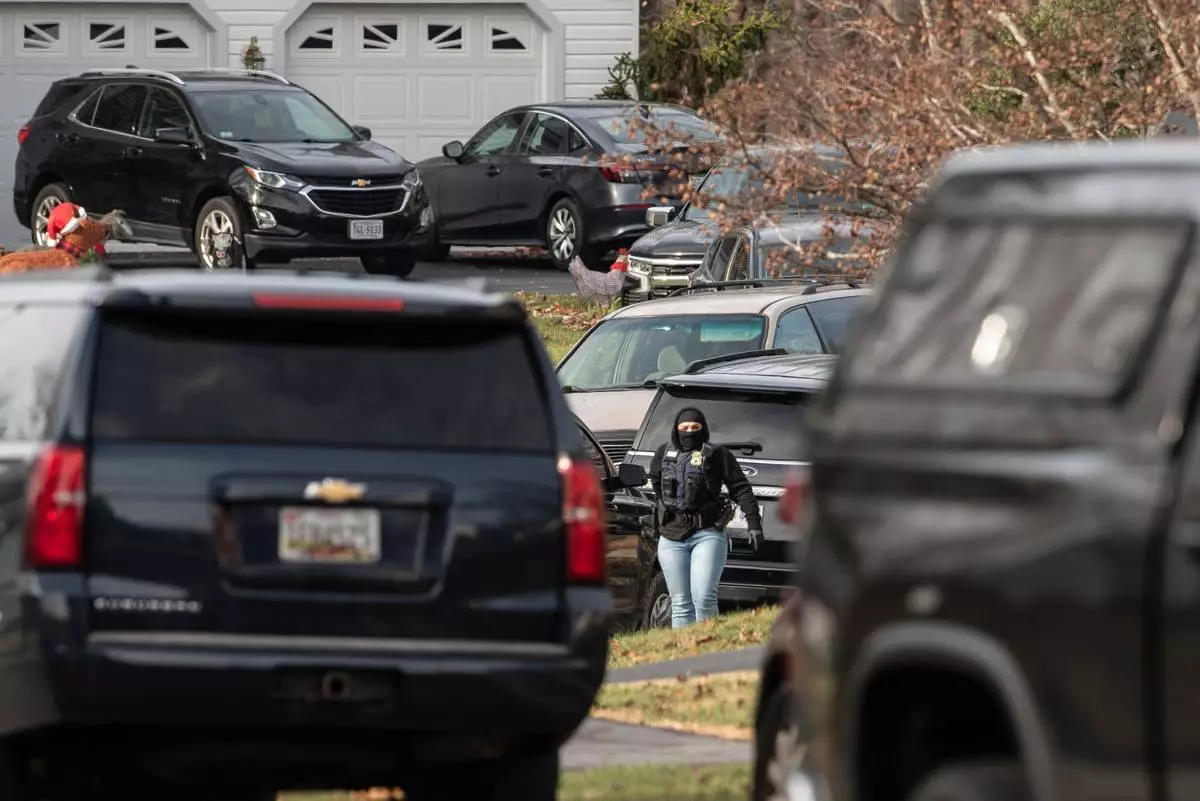 An FBI agent stands near the house where the FBI made an arrest, in Woodbridge, Va., Thursday, Dec. 4, 2025, in a nearly five-year old investigation into who placed pipe bombs in Washington before the Jan. 6, 2021 riot at the US Capitol. (AP Photo/Cliff Owen)