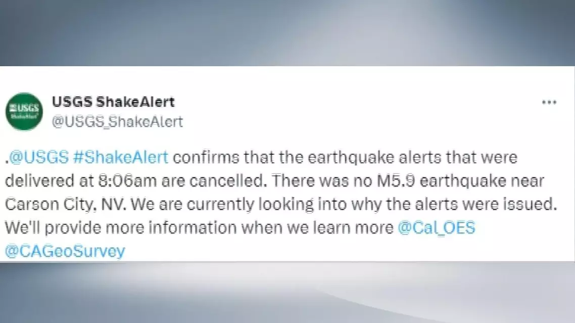 "The ShakeAlert EEW (Earthquake Early Warning) system released an incorrect alert for a magnitude 5.9 earthquake near Reno and Carson City, Nevada," the agency said in a post on its website.
