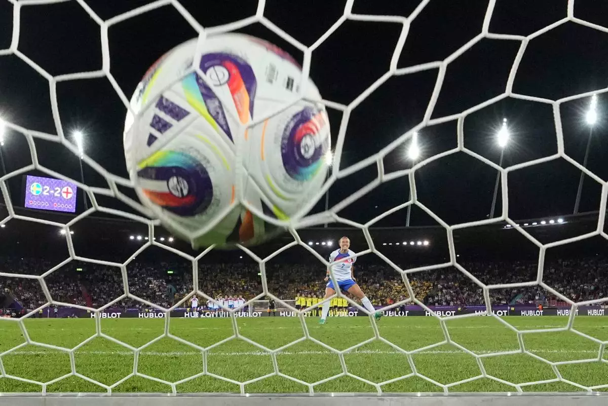 England's Lucy Bronze celebrates after scoring a penalty during a shootout at the end of the Women's Euro 2025 quarterfinal soccer match between Sweden and England at Stadion Letzigrund in Zurich, Switzerland, July 17, 2025. (AP Photo/Martin Meissner, File)