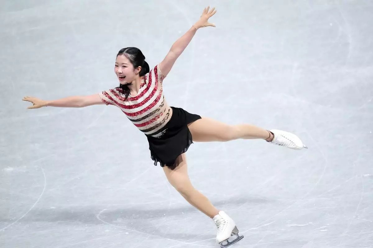 Ami Nakai, of Japan, competes in the women's short program segment at the ISU Grand Prix of Figure Skating Final in Nagoya, central Japan, Friday, Dec. 5, 2025. (AP Photo/Hiro Komae)