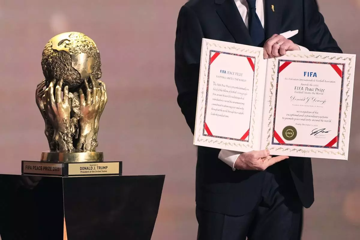Infantino also presented Trump with a gold trophy with his name on it that depicts hands holding up the world. “You definitely deserve the first FIFA Peace Prize for your action, for what you have obtained in your way," said Infantino, who spoke after a video was played that showed images of Trump meeting with world leaders from countries whose conflicts he has taken credit for resolving.