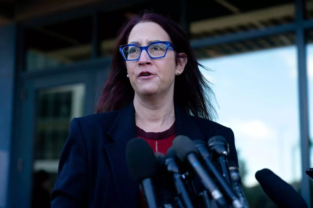 FILE - Rep.-elect Laura Friedman, D-Calif, talks to reporters after attending new Congress member orientation, Tuesday, Nov. 12, 2024, on Capitol Hill in Washington. (AP Photo/Jose Luis Magana, File)
