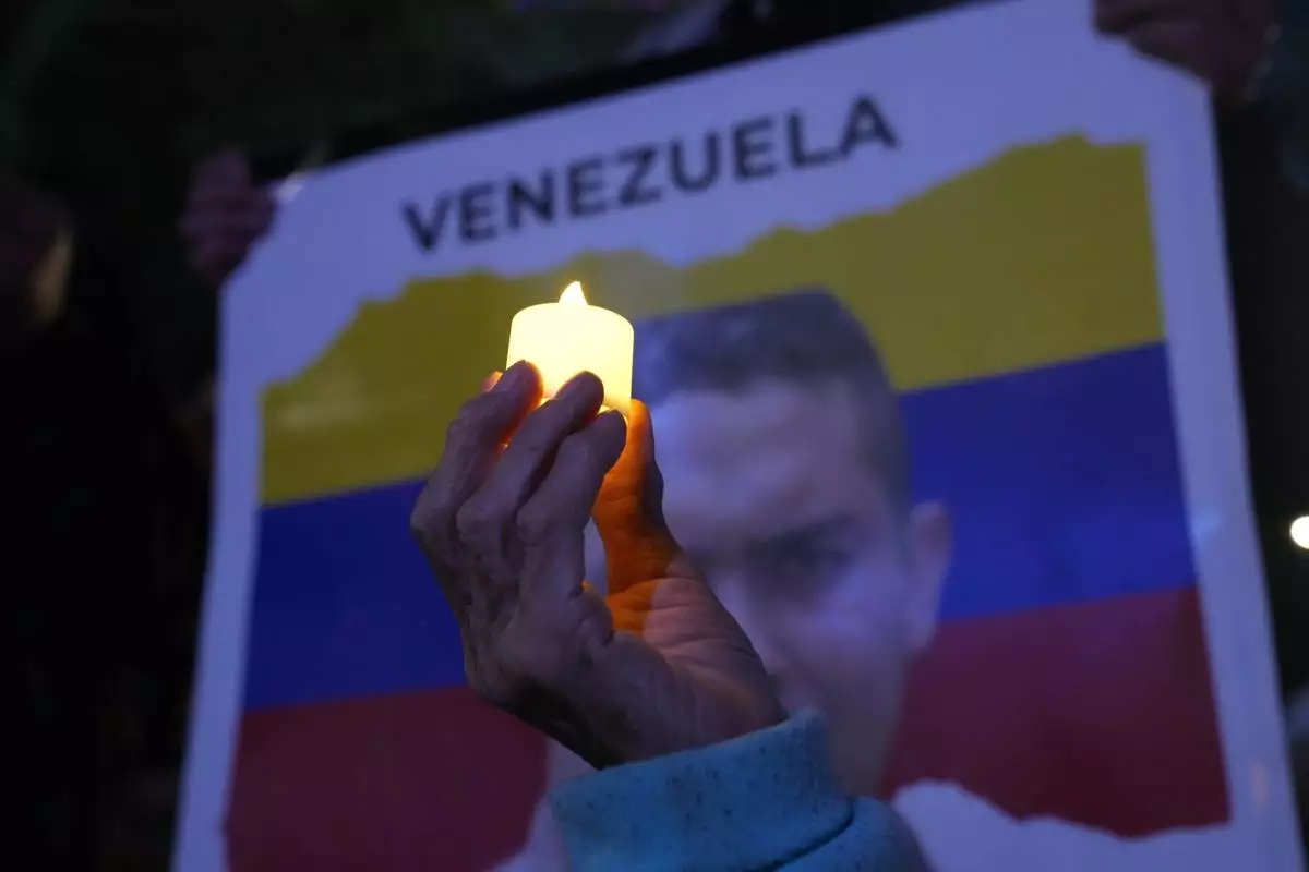 A Venezuelan opposition member holds up a candle during a demonstration ahead of the Nobel Peace Prize ceremony where Venezuelan Maria Corina Machado is among this year's laureates, in Mexico City, Saturday, Dec. 6, 2025. (AP Photo/Marco Ugarte)