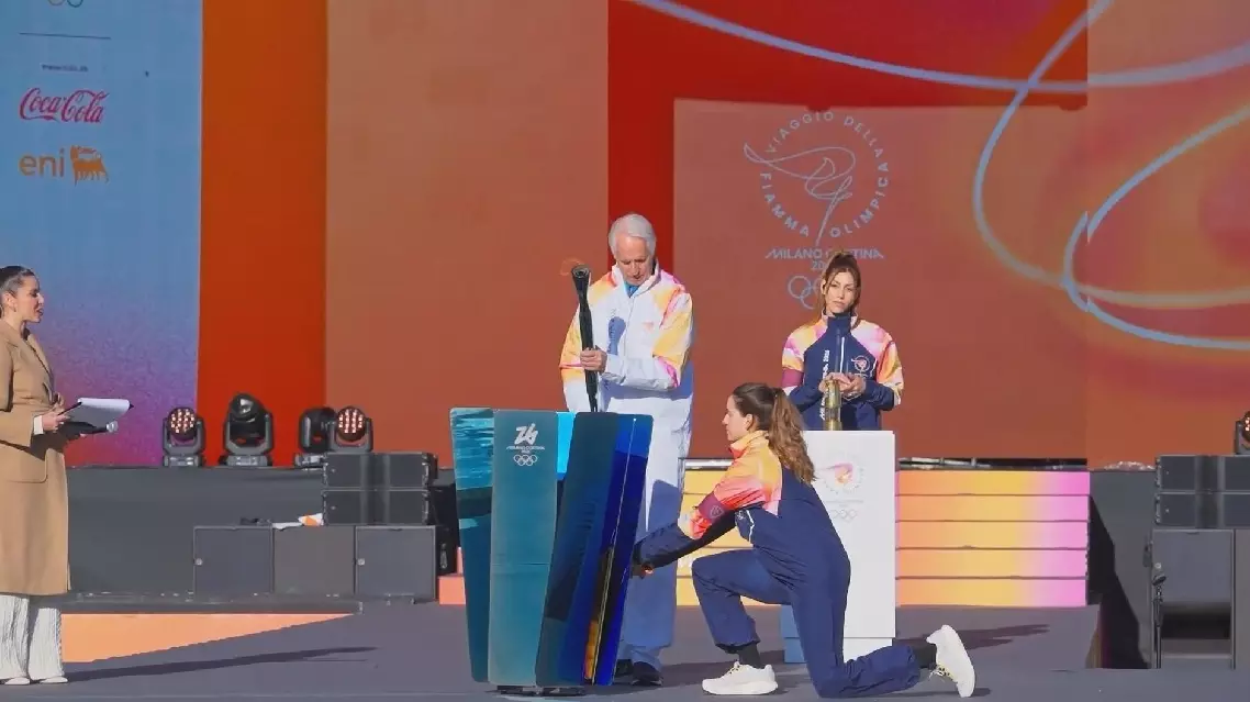At around 09:50, Giancarlo Peris, the final torchbearer of the 1960 Rome Games, brought the flame onto the launch stage. A torch was lit with the flame, and Giovanni Malago, president of the Milan-Cortina 2026 organizing committee, lit the cauldron with it.