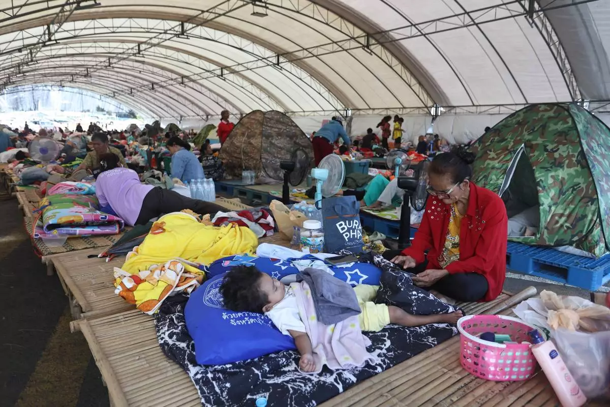 Thai residents who fled homes as Thailand and Cambodia clash over border, rest at an evacuation center in Buriram province, Thailand, Monday, Dec. 8, 2025. (AP Photo/Sopa Saelee)