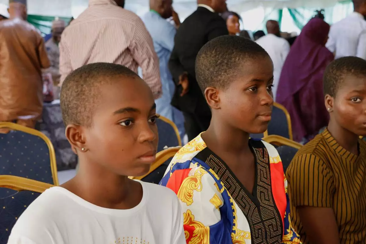 MINNA, Nigeria (AP) — A total of 100 of the schoolchildren abducted from a Nigerian Catholic school last month and released over the weekend were hosted at a government-organized ceremony on Monday, many of them looking lost but relieved.