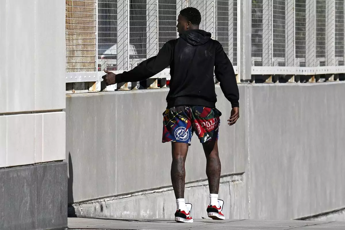 FILE - Miami Heat guard Terry Rozier leaves the U.S. Federal Courthouse through a side door after his arraignment, Oct. 23, 2025, in Orlando, Fla. (AP Photo/Phelan M. Ebenhack, File)