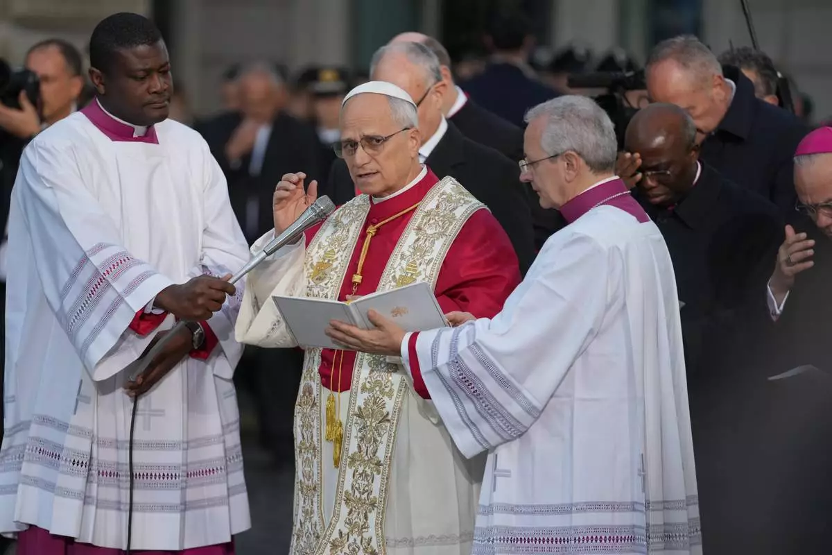 Wearing his formal red mozzetta, or cape, Leo offered a big bouquet of white roses and then a brief prayer at the foot of the statue. He recalled the millions of people who have come to Rome this year on a Holy Year pilgrimage that brought them to the Holy Door of St. Peter's Basilica.