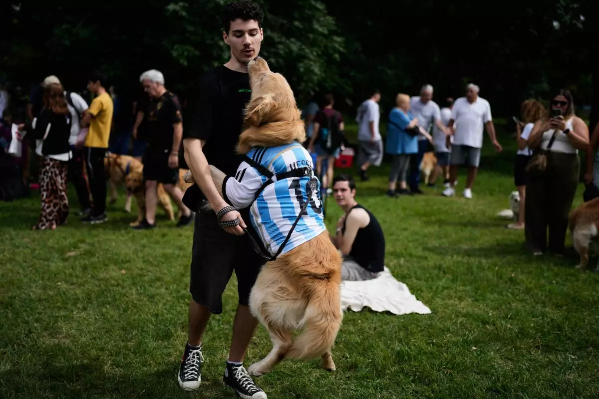 Manolo, who only gave his first name, headed to the park with his dog, Maximiliano Rivero, to join other golden retrievers' enthusiasts. He gave his dog a big kiss as he held him, surrounded by a sea of golden fur of different shades.