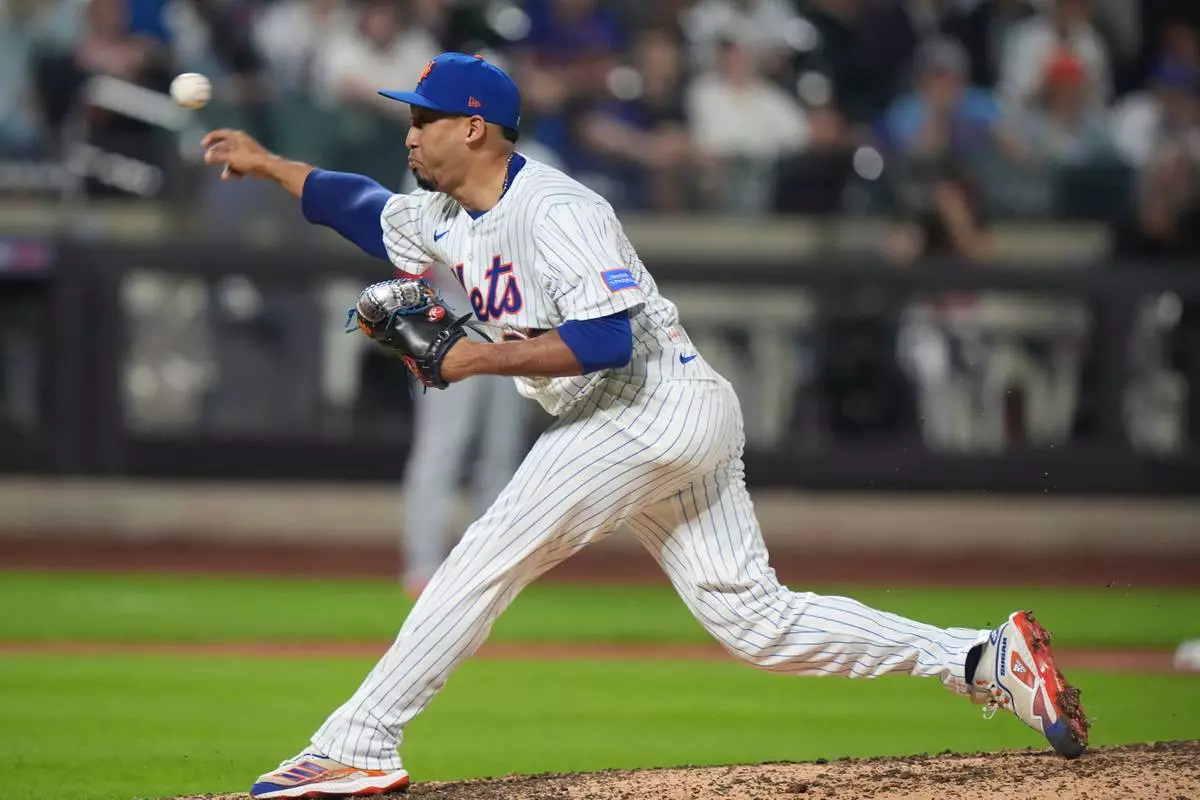 FILE - New York Mets' Edwin Díaz (39) pitches during the ninth inning of a baseball game against the Washington Nationals Tuesday, June 10, 2025, in New York. (AP Photo/Frank Franklin II, File)