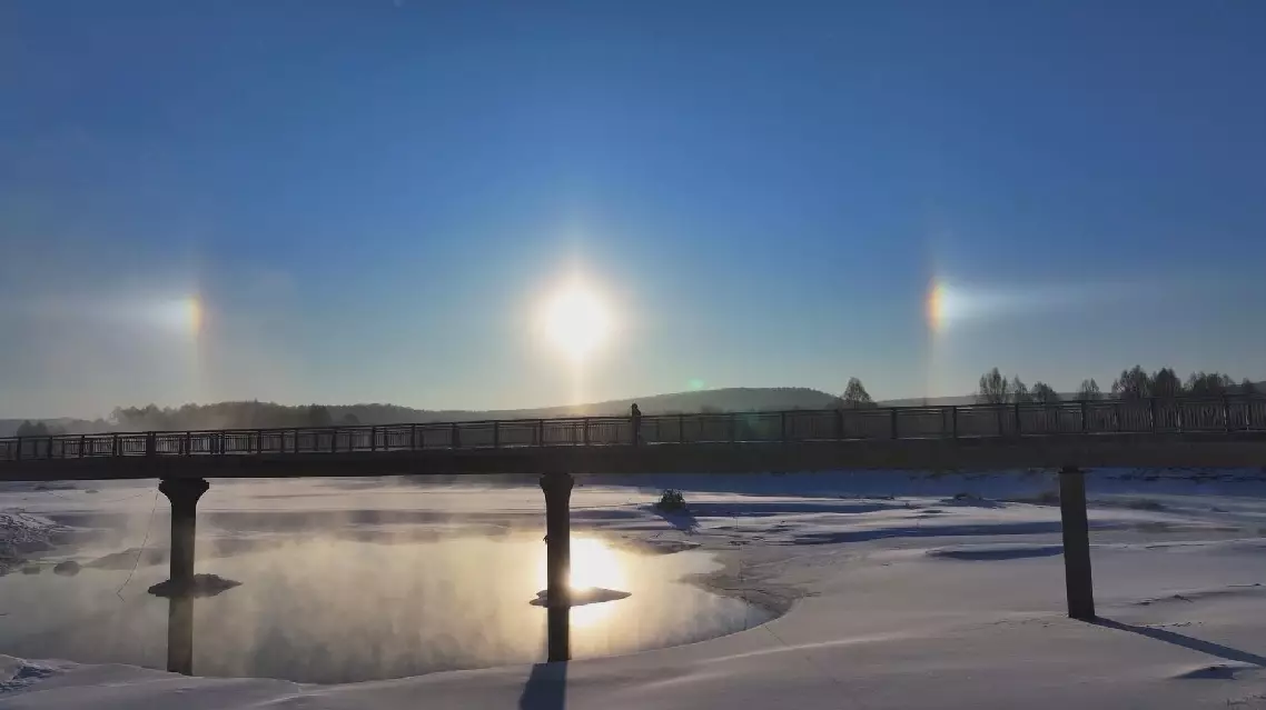 Rarely seen sun dogs phenomenon appears in sky over Inner Mongolia
