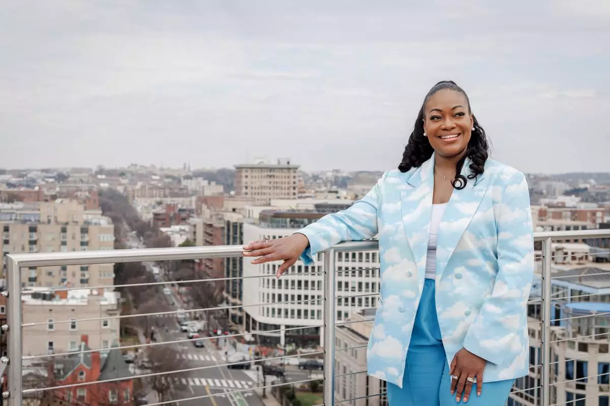Michele Jawando, the next CEO of the Omidyar Network, poses for a photo at the company's office in Washington, Wednesday, March 11, 2026. (AP Photo/Moriah Ratner)