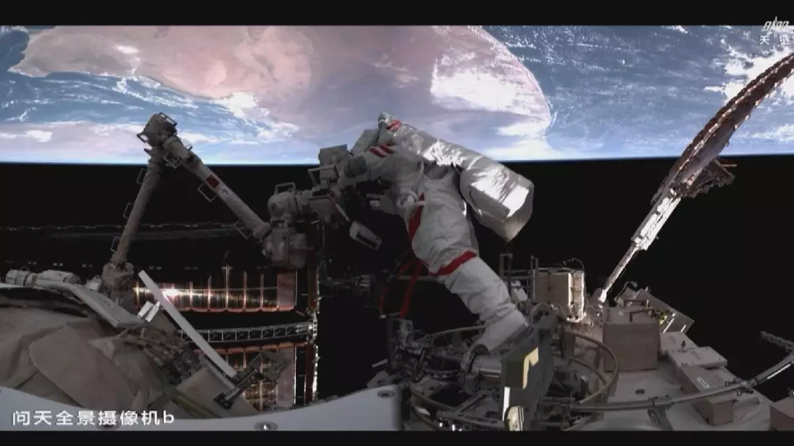 The EVAs began around 10:28, when Zhang Lu opened the airlock hatch door on the lab module, Wentian, and moved outside.