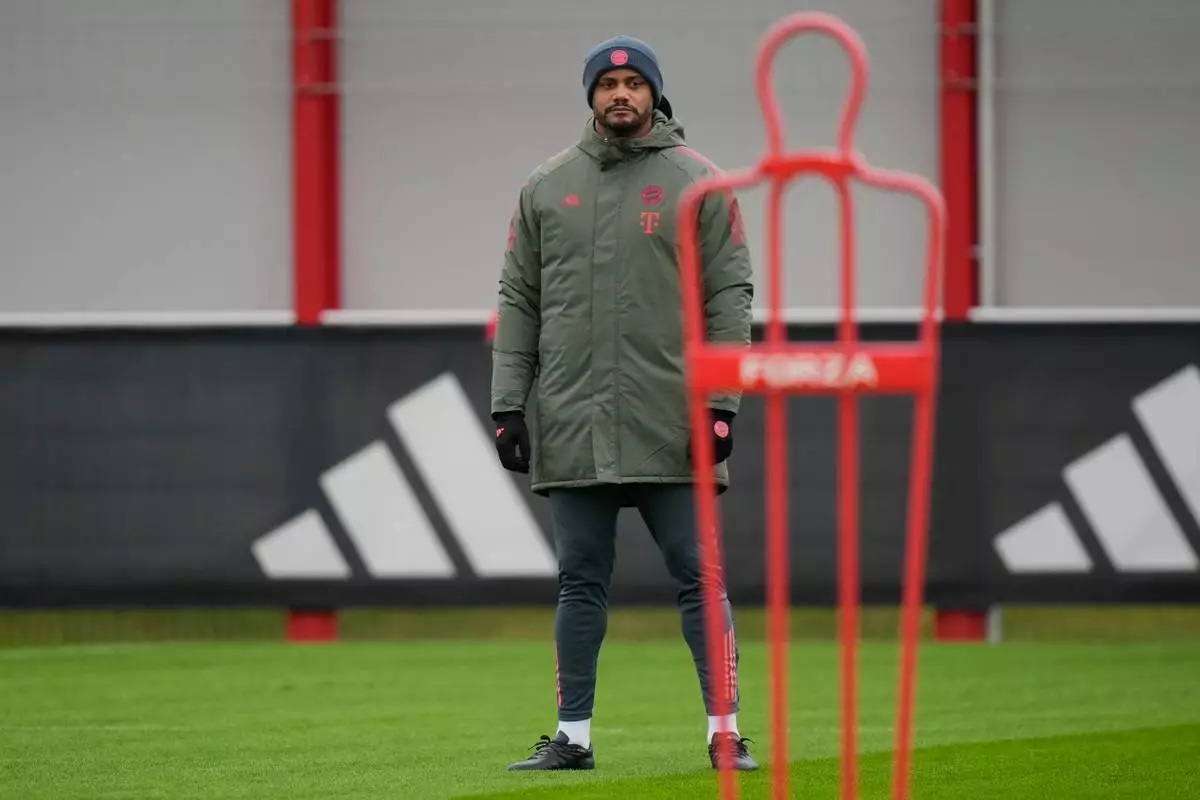 Bayern's head coach Vincent Kompany attends a training session in Munich, Germany, Monday, Dec. 8, 2025, ahead of the Champions League opening phase soccer match between FC Bayern and Sporting Lisbon. (AP Photo/Matthias Schrader)