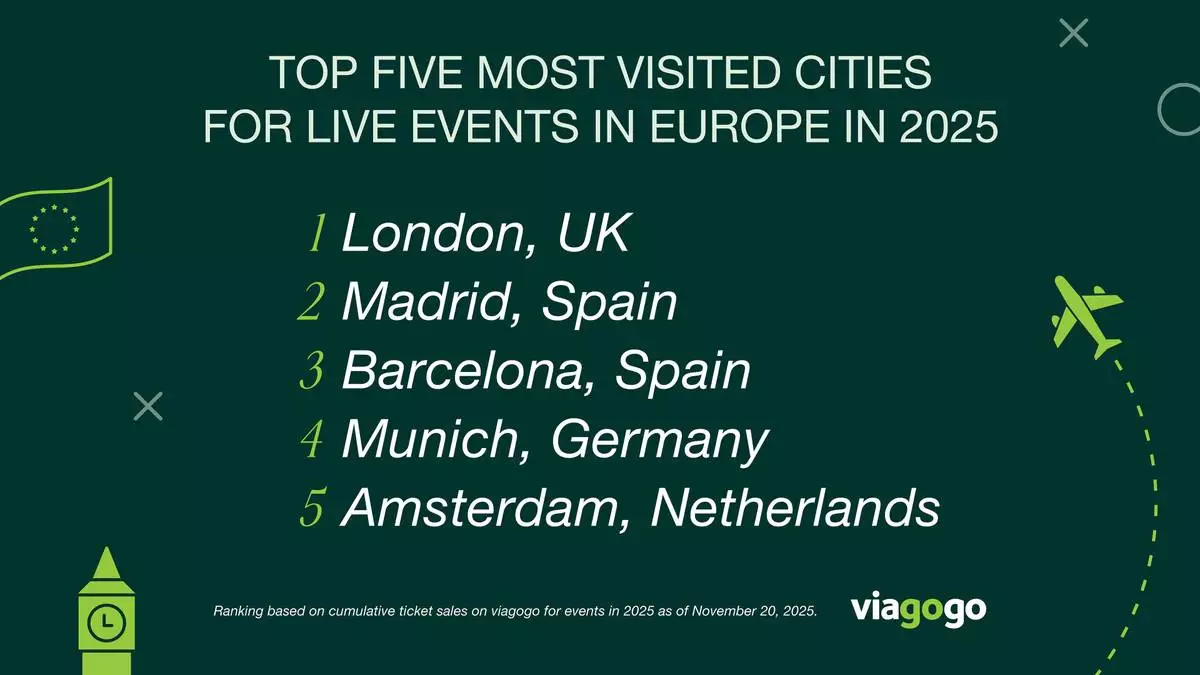 Even as many Brits travelled abroad, London’s major concerts and iconic events like Wimbledon propelled the city to the top of Europe’s live-event scene, making it the most visited EU capital in 2025 with fans from 164 countries. Spain rounded out the top three, with Madrid and Barcelona taking second and third place.