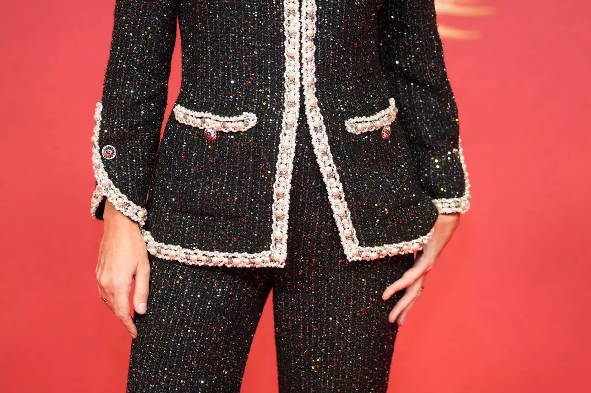 Others went crisp and relied on an austere palette of black and white to make their statement. And woven through were quiet gestures of political intent. Clutches patterned like keffiyehs, pins worn close to the heart — small but unmistakable signals of solidarity with Palestinians at a festival on the edge of a region in conflict.