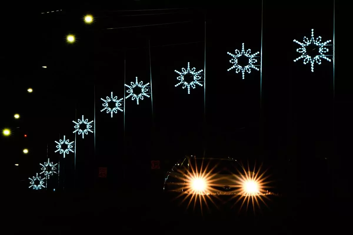 A flag ripples in the wind as snow falls in Lowville, New York, on Tuesday night, Dec. 9, 2025. The area faces a winter storm warning through Thursday. (AP Photo/Cara Anna)