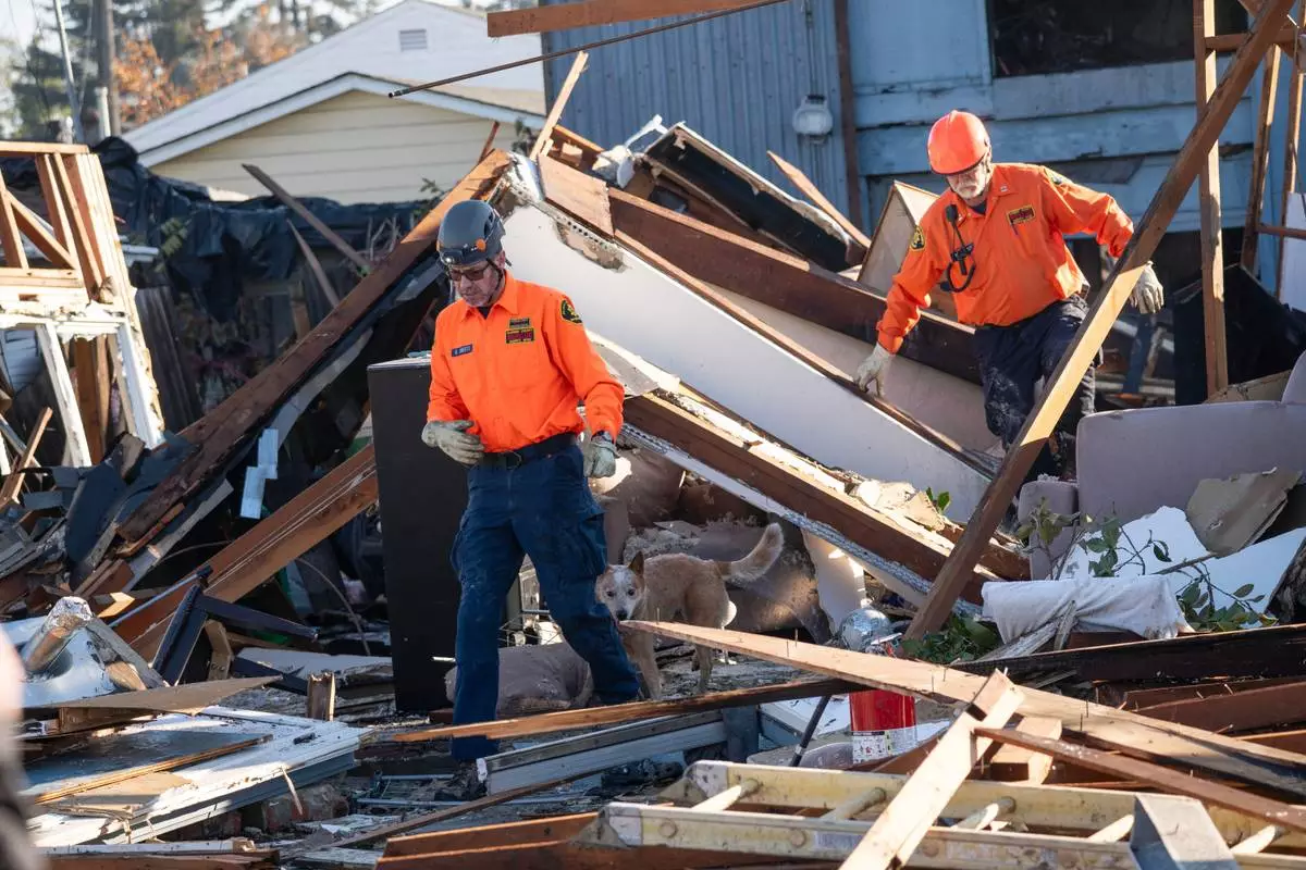 Alameda County Sheriff's Office Search and Rescue teams work the scene after a gas explosion Thursday, Dec. 11, 2025, in Hayward, Calif. (AP Photo/Minh Connors)