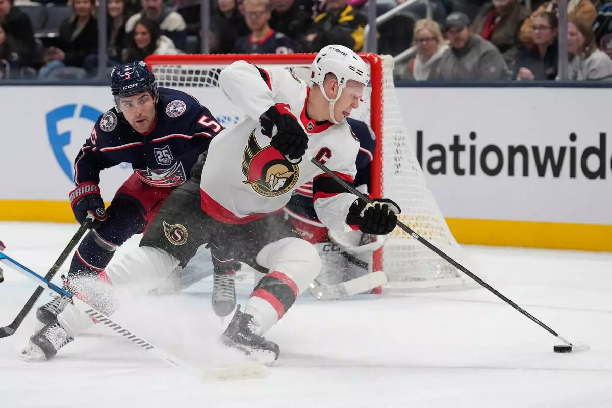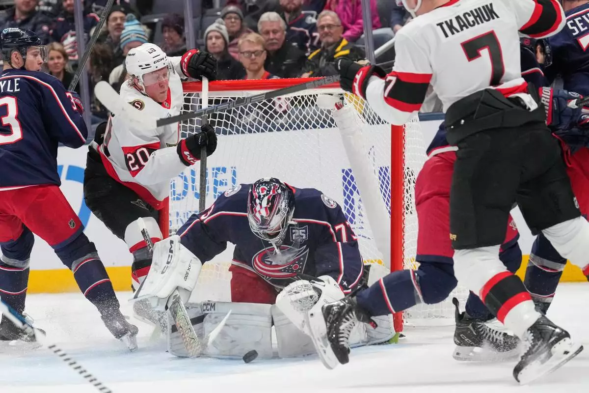 COLUMBUS, Ohio (AP) — Tim Stützle scored twice, and the Ottawa Senators used a four-goal first period to beat the Columbus Blue Jackets 6–3 on Thursday night, snapping a three-game skid.