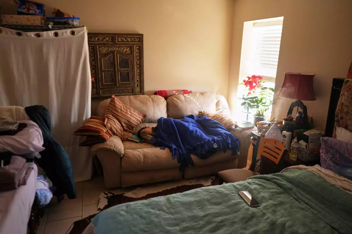 The son of Mayflower Church Deacon, Luo Changcheng, who wasn't feeling well, naps in the room he shares with his parents, in Midland, Texas, Jan. 20, 2025. (AP Photo/Rebecca Blackwell)