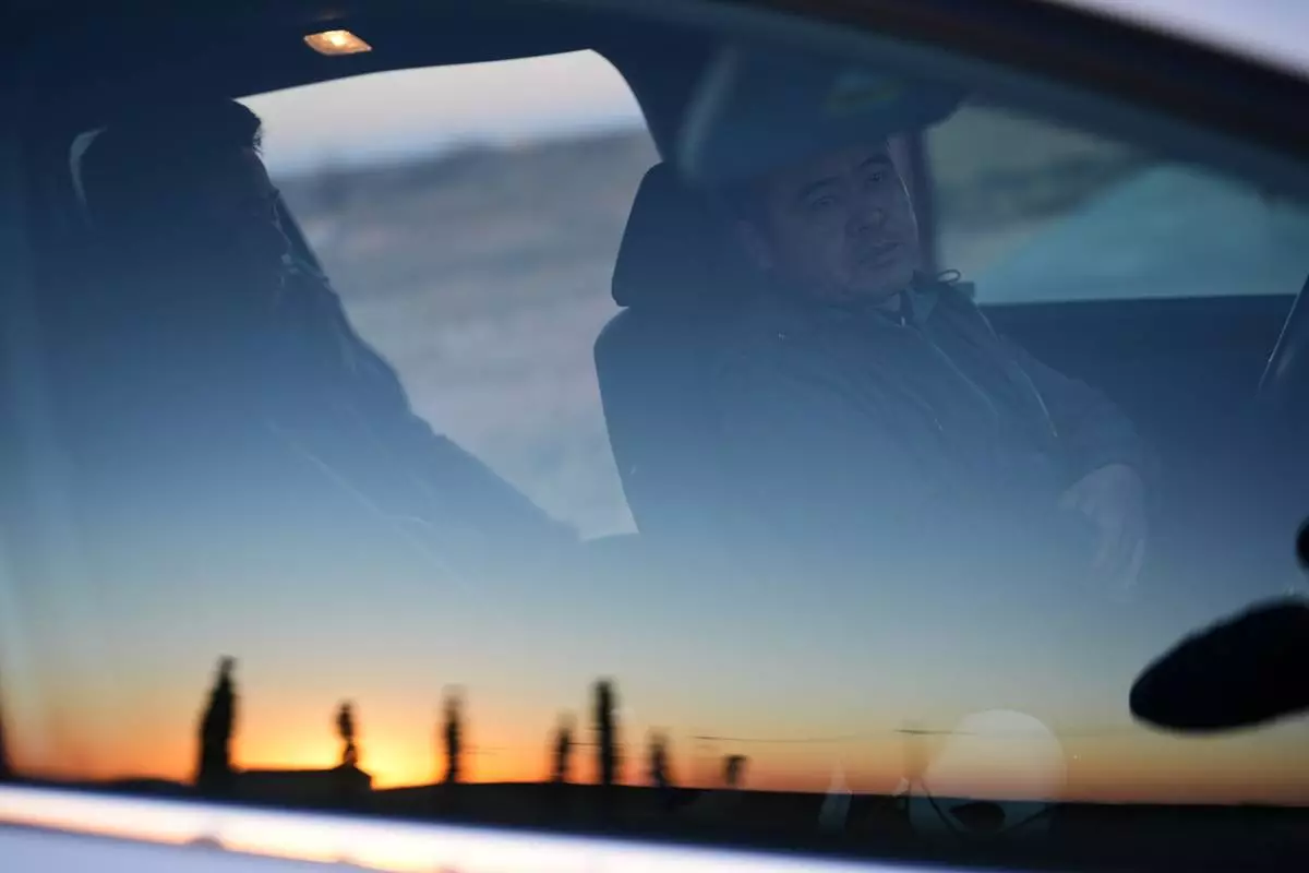 Former Chinese official Li Chuanliang sits in his car as he drives between buildings in the Mayflower Church community, Jan. 18, 2025, in Midland, Texas. (AP Photo/Rebecca Blackwell)