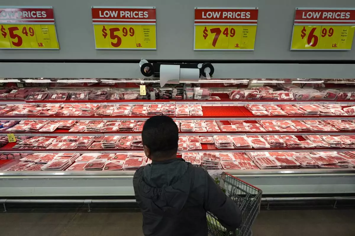 Former Chinese official Li Chuanliang shops for meat at a supermarket in Midland, Texas, Jan. 20, 2025. (AP Photo/Rebecca Blackwell)