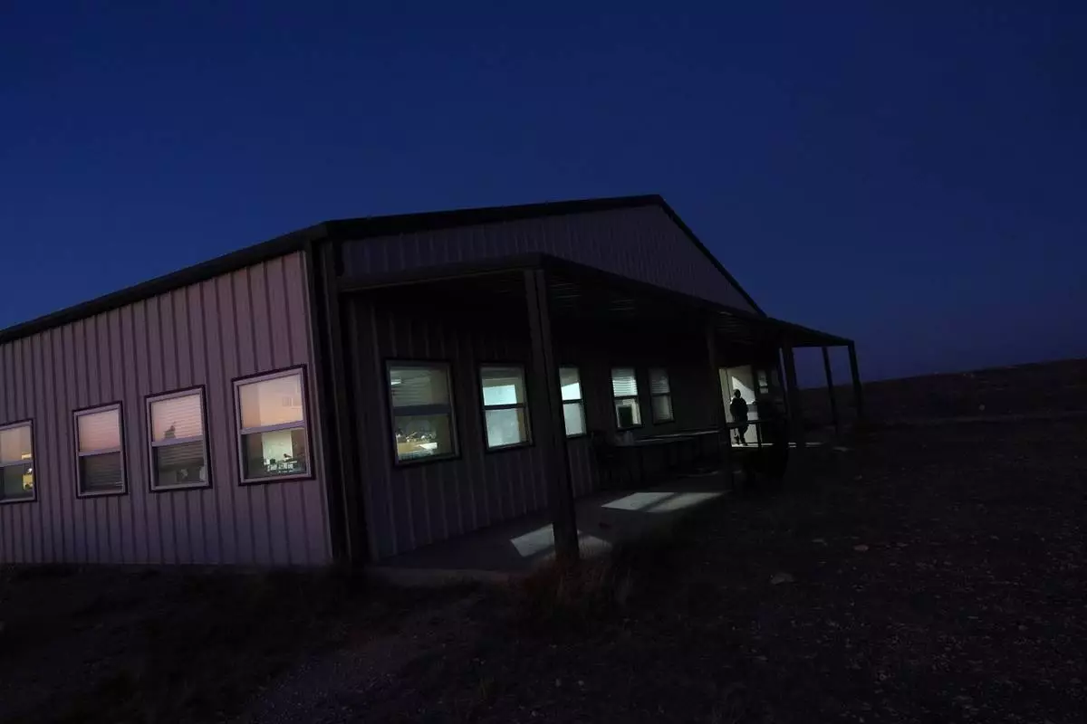 Lights shine inside the Mayflower Church hall, where members of the community gather for religious study or to enjoy downtime, in Midland, Texas, Jan. 19, 2025. (AP Photo/Rebecca Blackwell)