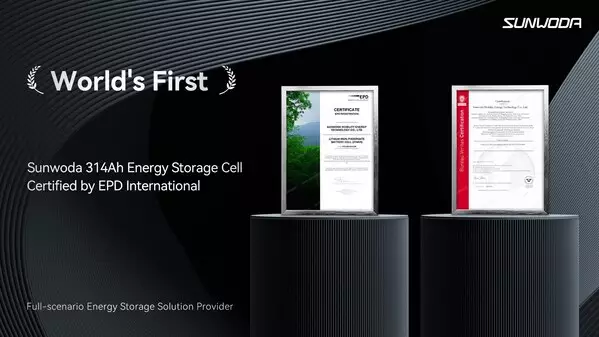 SHENZHEN, China, Dec. 12, 2025 /PRNewswire/ -- Sunwoda (Stock Code: 300207), a global full-scenario energy storage solution provider, announced that its 314Ah energy storage cell has officially been certified by EPD International, making it the first product in the global battery industry to receive this accreditation. Conducted by the internationally recognized Bureau Veritas, this certification marks a significant milestone in Sunwoda's leadership in lifecycle management and green, low-carbon manufacturing.