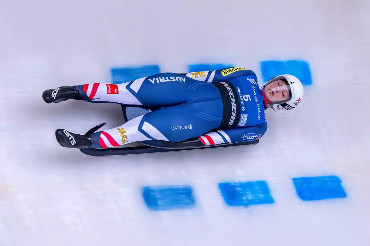 Third placed Austria's Dorothea Schwarz competes during the women's single-seater Luge World Cup race in Winterberg, Germany, Sunday, Dec. 7, 2025. (David Inderlied/dpa via AP)