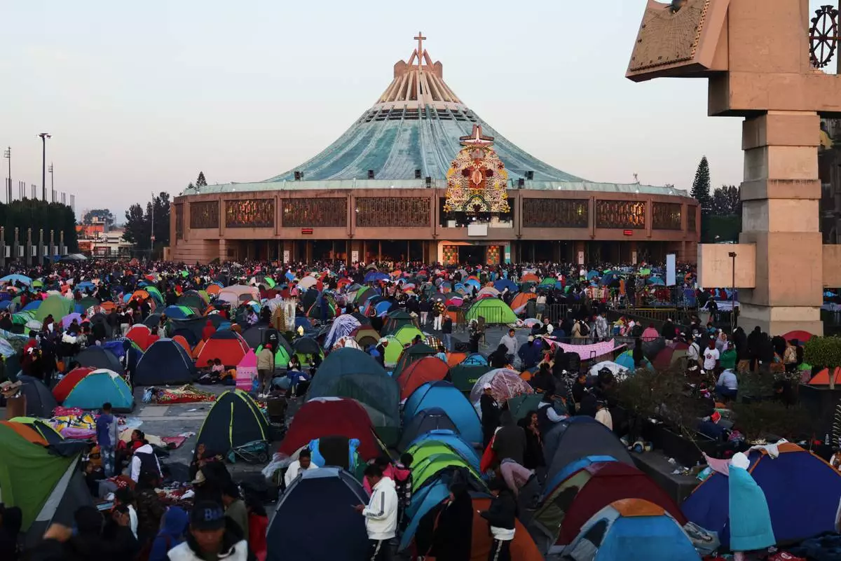Pilgrims gather outside the Basilica of Our Lady of Guadalupe in Mexico City, on her feast day, Friday, Dec. 12, 2025. (AP Photo/Claudia Rosel)