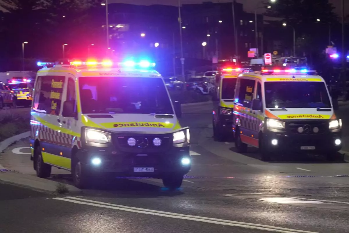 Ambulances move around at Bondi Beach after a reported shooting in Sydney, Sunday, Dec. 14, 2025. (AP Photo/Mark Baker)
