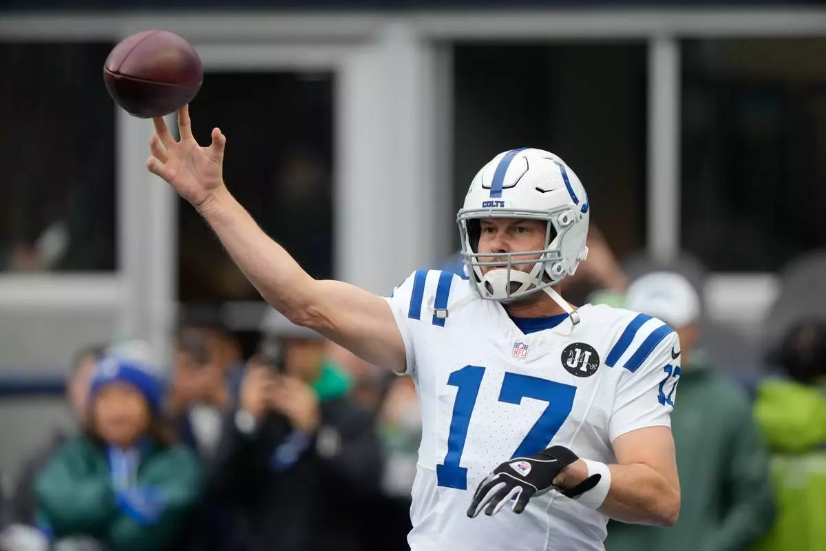 Indianapolis Colts quarterback Philip Rivers warms up before an NFL football game against the Seattle Seahawks, Sunday, Dec. 14, 2025, in Seattle. (AP Photo/Stephen Brashear)