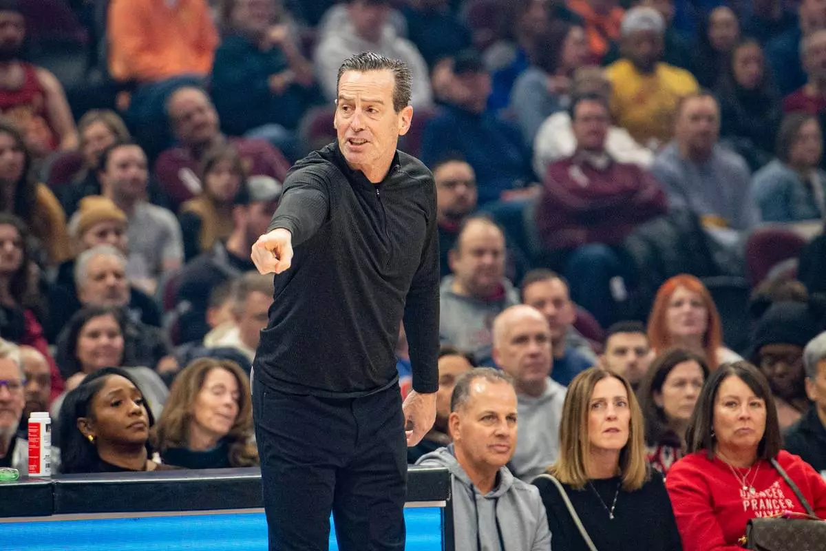 Cleveland Cavaliers head coach Kenny Atkinson directs his team against the Charlotte Hornets during the first half of an NBA basketball game, in Cleveland, Sunday, Dec. 14, 2025. (AP Photo/Phil Long)