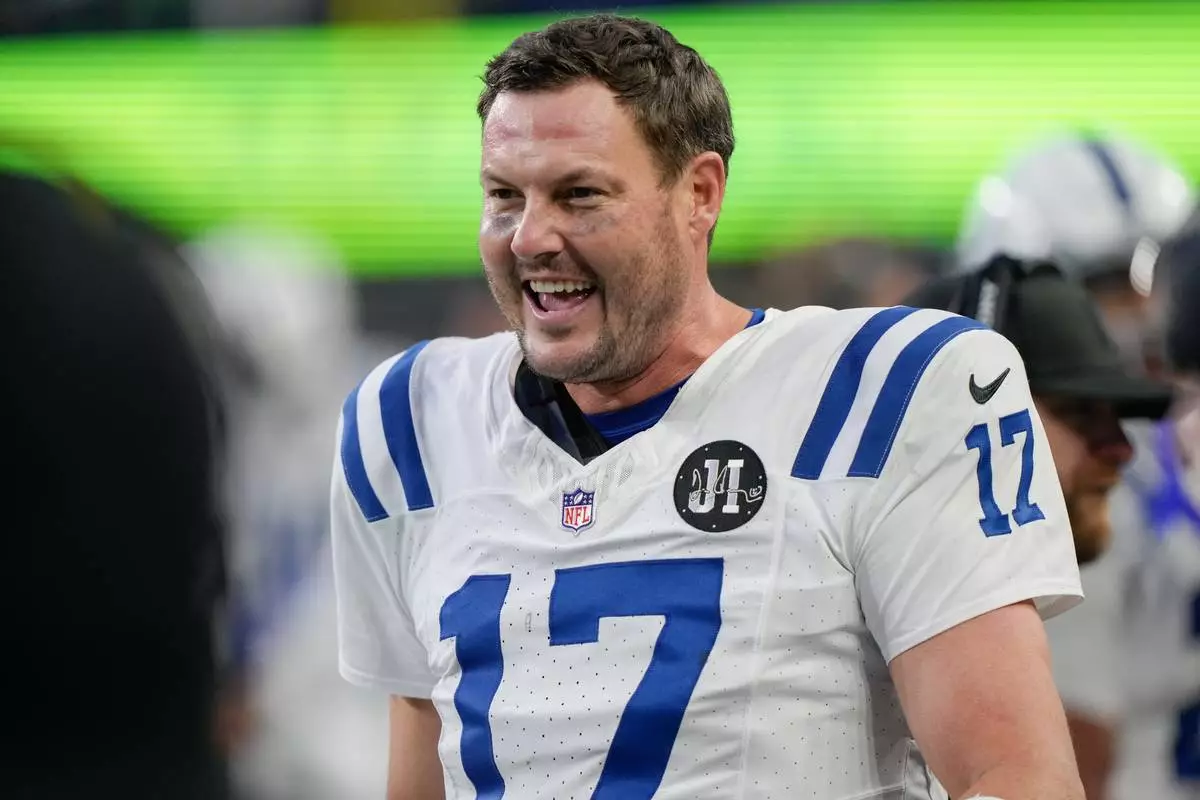 Indianapolis Colts quarterback Philip Rivers looks on after an NFL football game against the Seattle Seahawks, Sunday, Dec. 14, 2025, in Seattle. (AP Photo/Lindsey Wasson)