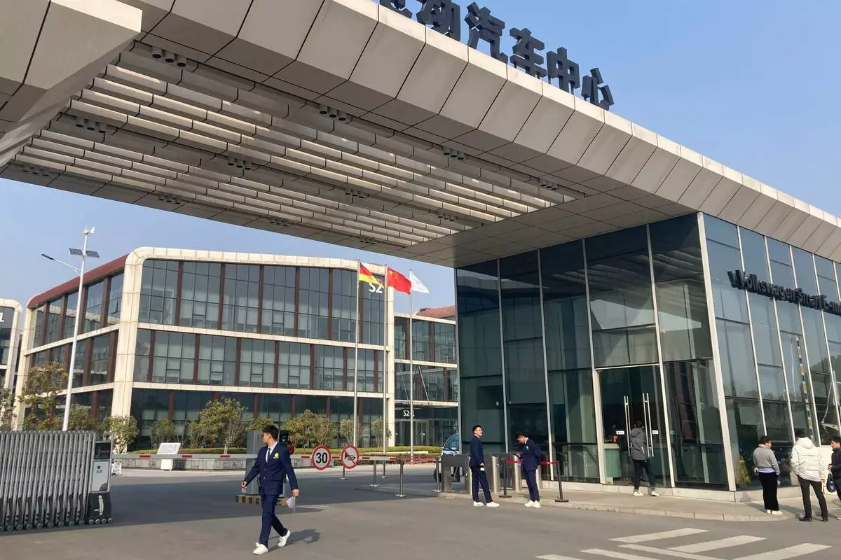 People pass by the entrance to Volkswagen (China) Technology Company, a 3 billion euros ($3.5 billion) R&D center in Hefei in eastern China's Anhui province, on Feb. 25, 2025. (AP Photo/Ken Moritsugu)